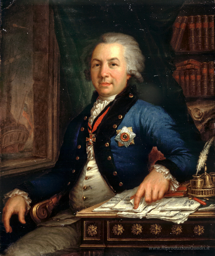Ti offriamo una riproduzione artigianale su tela dell'opera famosa 'Ritratto del poeta russo Gavril Derzavin' di Vladimir Borovikovsky, dal Museo delle Riproduzioni.
