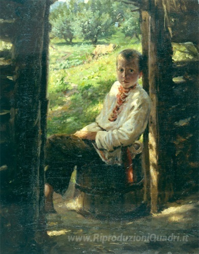 Ti offriamo una riproduzione artigianale su tela dell'opera famosa 'Ritratto del ragazzo ucraino' di Nikolai Ge, dal Museo delle Riproduzioni.
