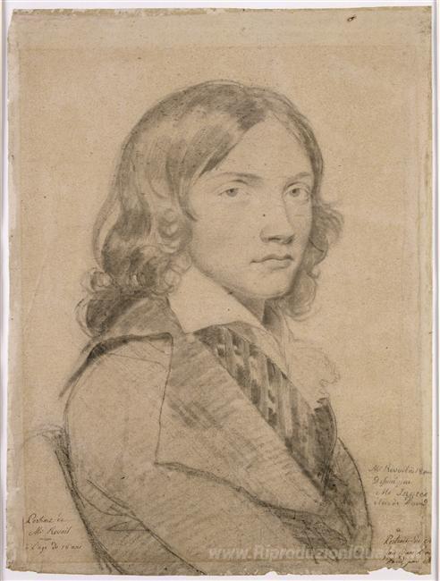 Immergiti nell'eleganza e nella raffinatezza del Ritratto del signor Revoil a 18 a busto, un capolavoro di Jean Auguste Dominique Ingres, uno dei più celebri esponenti del Neoclassicismo. Questo dipinto, realizzato con tecniche a olio di straordinaria precisione, cattura non solo l'aspetto fisico del soggetto, ma anche l'essenza e la personalità che lo contraddistinguono, grazie a un'abilità ineguagliabile nel ritrarre i dettagli e le sfumature del viso umano.