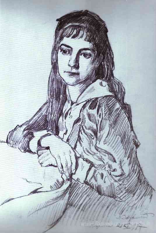 Ti offriamo una riproduzione artigianale su tela dell'opera famosa 'Ritratto della figlia dell'artista, Vera' di Mstislav Dobuzhinsky, dal Museo delle Riproduzioni.