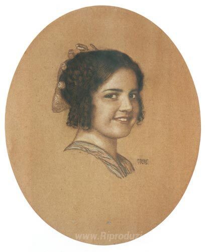 Ti offriamo una riproduzione artigianale su tela dell'opera famosa 'Ritratto della figlia Maria Bloccato' di Franz Stuck, dal Museo delle Riproduzioni.