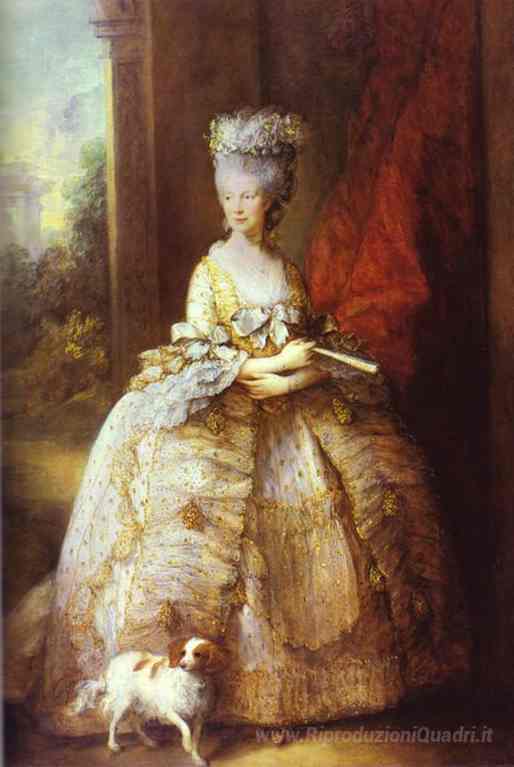 Ti offriamo una riproduzione artigianale su tela dell'opera famosa 'Ritratto della regina Charlotte' di Thomas Gainsborough, dal Museo delle Riproduzioni.