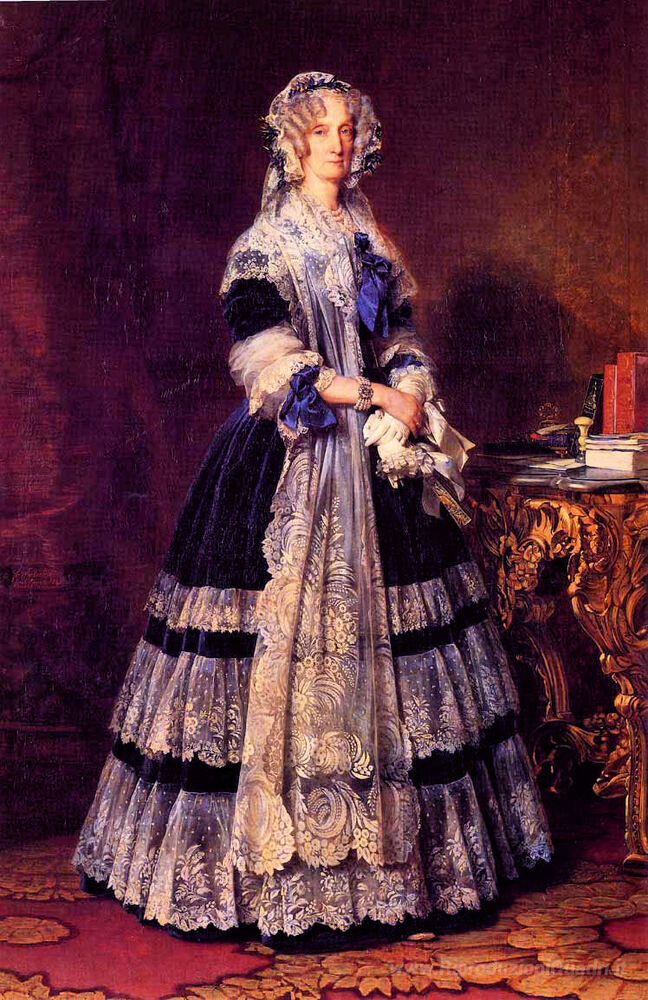 Ti offriamo una riproduzione artigianale su tela dell'opera famosa 'Ritratto della Regina Maria Amelie di Francia' di Franz Xaver Winterhalter, dal Museo delle Riproduzioni.