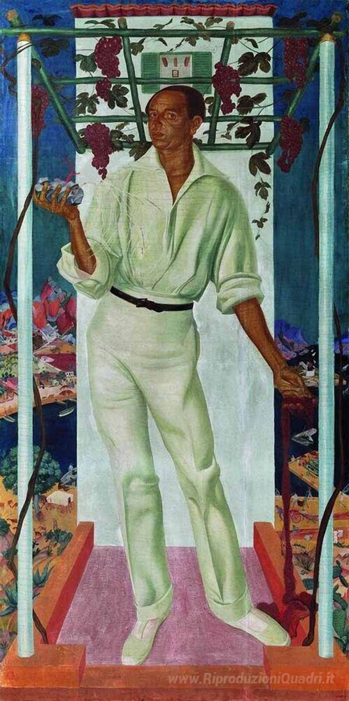 Ti offriamo una riproduzione artigianale su tela dell'opera famosa 'Ritratto dell'artista messicano Roberto Montenegro' di Alexandre Jacovleff, dal Museo delle Riproduzioni.