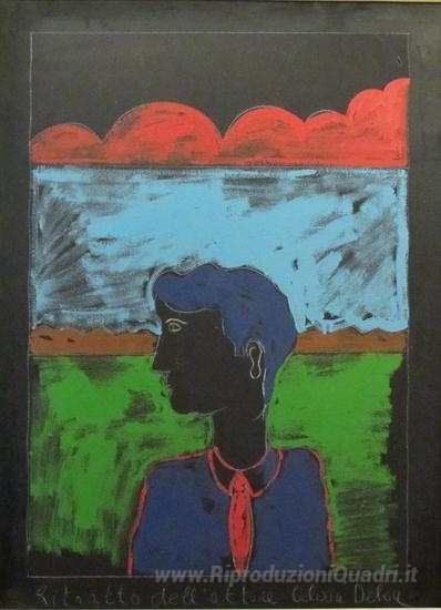 Ti offriamo una riproduzione artigianale su tela dell'opera famosa 'Ritratto dell'attore Alain Delon' di Tano Festa, dal Museo delle Riproduzioni.