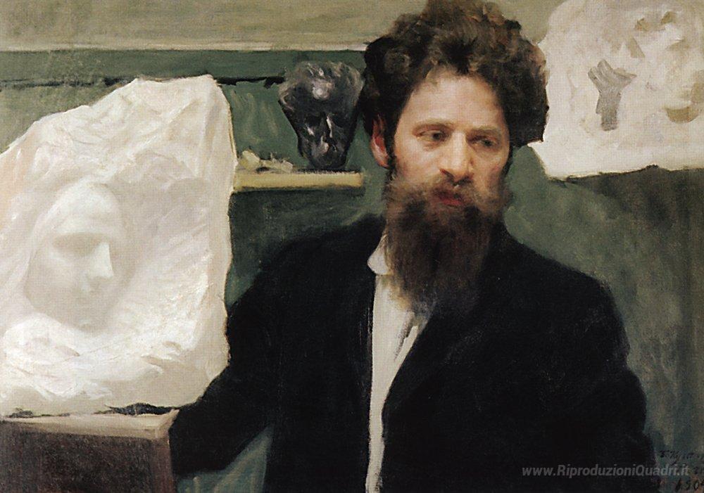 Ti offriamo una riproduzione artigianale su tela dell'opera famosa 'Ritratto dello scultore N.L. Aronson' di Boris Kustodiev, dal Museo delle Riproduzioni.