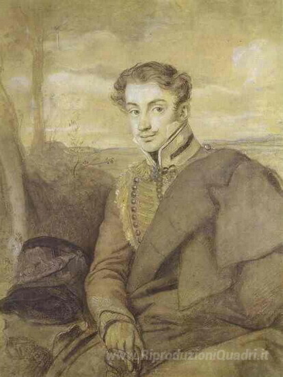 Ti offriamo una riproduzione artigianale su tela dell'opera famosa 'Ritratto di A. Dmitriyev-Mamonov' di Orest Kiprensky, dal Museo delle Riproduzioni.