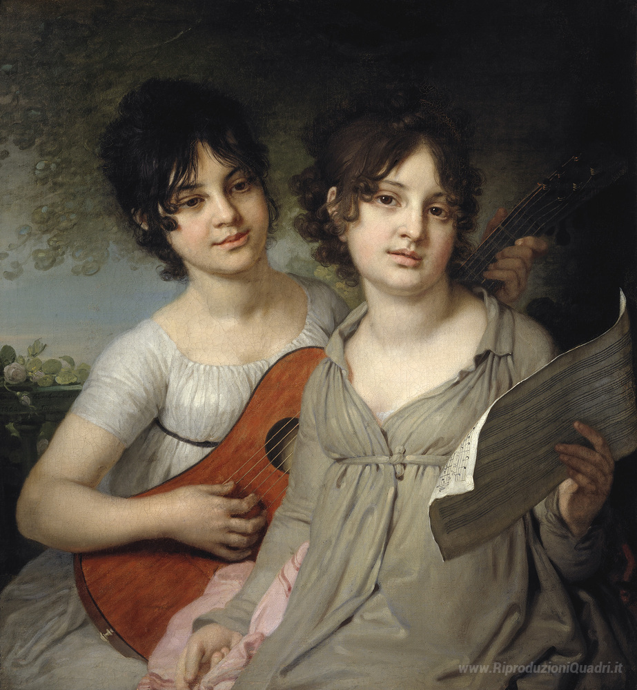 Ti offriamo una riproduzione artigianale su tela dell'opera famosa 'Ritratto di A. e V. Gagarin' di Vladimir Borovikovsky, dal Museo delle Riproduzioni.