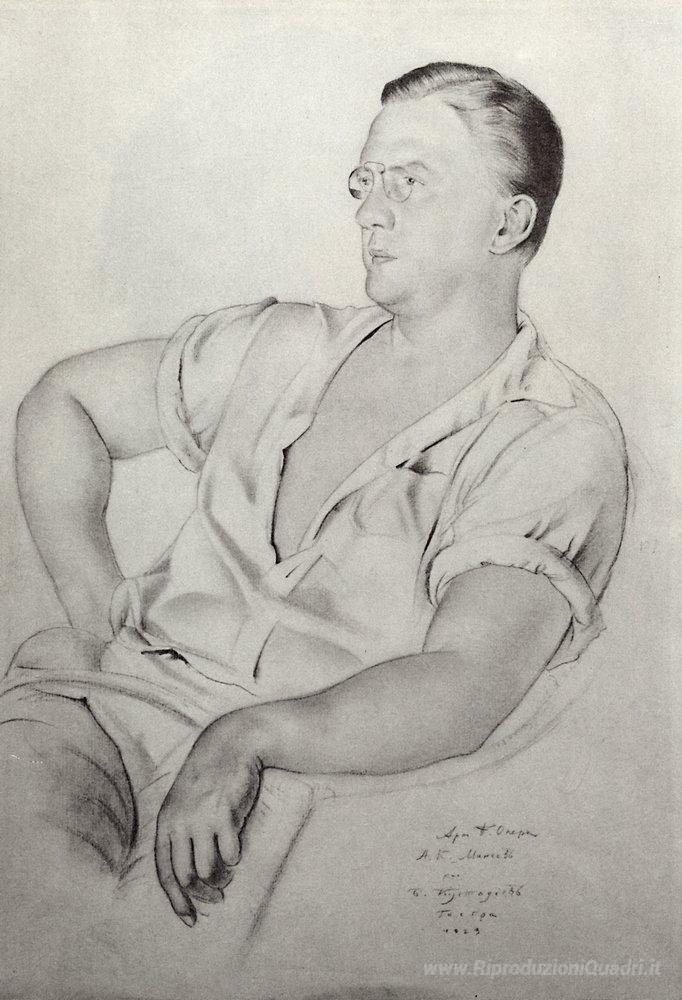 Ti offriamo una riproduzione artigianale su tela dell'opera famosa 'Ritratto di A.K. Mineev' di Boris Kustodiev, dal Museo delle Riproduzioni.