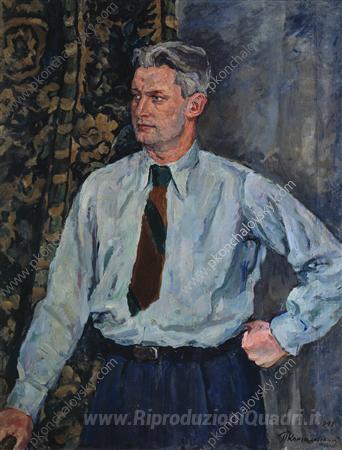 Ti offriamo una riproduzione artigianale su tela dell'opera famosa 'Ritratto di Alexander Alexandrovich Fadeyev' di Pyotr Konchalovsky, dal Museo delle Riproduzioni.