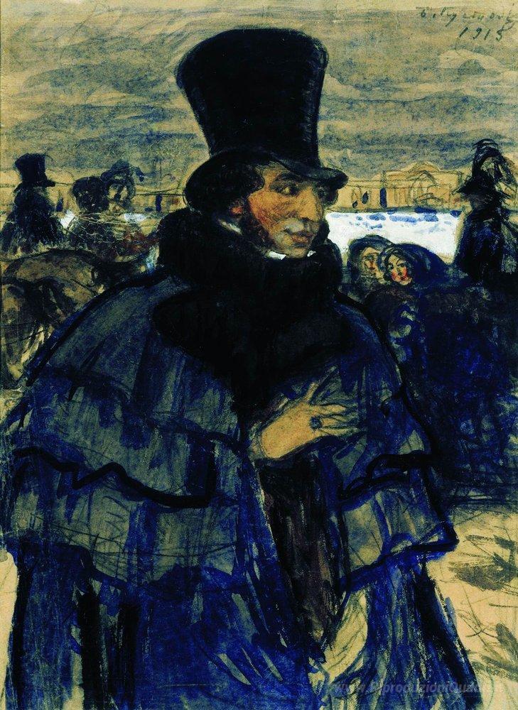 Ti offriamo una riproduzione artigianale su tela dell'opera famosa 'Ritratto di Alexander Pushkin sulla Neva Embankment' di Boris Kustodiev, dal Museo delle Riproduzioni.