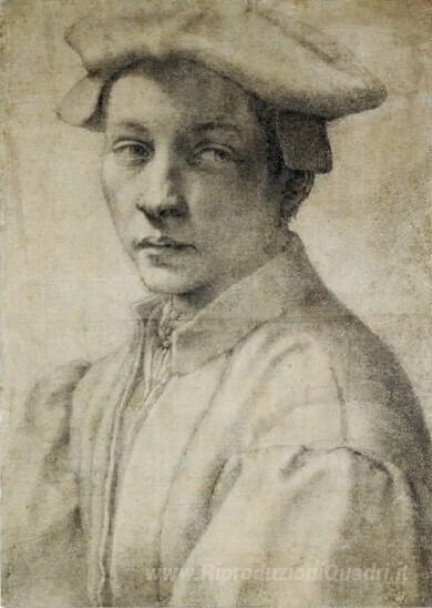 Ti offriamo una riproduzione artigianale su tela dell'opera famosa 'Ritratto di Andrea Quaratesi' di Michelangelo, dal Museo delle Riproduzioni.