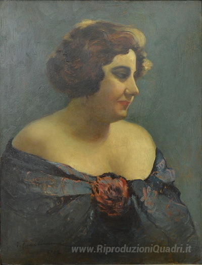 Ti offriamo una riproduzione artigianale su tela dell'opera famosa 'Ritratto di attrice Aura Fotino' di Ion Tuculescu, dal Museo delle Riproduzioni.
