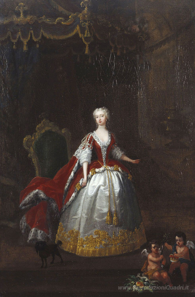 Ti offriamo una riproduzione artigianale su tela dell'opera famosa 'Ritratto di Augusta di Sassonia Gotha' di William Hogarth, dal Museo delle Riproduzioni.