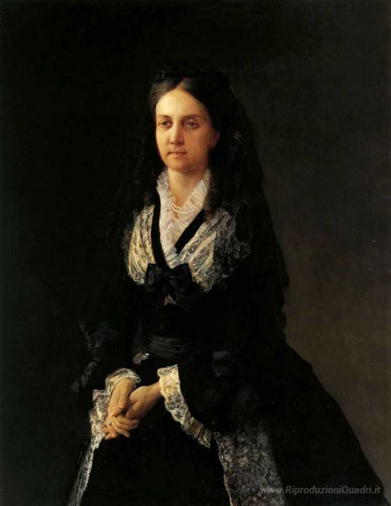 Ti offriamo una riproduzione artigianale su tela dell'opera famosa 'Ritratto di Barbara Kocubej' di Nikolai Ge, dal Museo delle Riproduzioni.