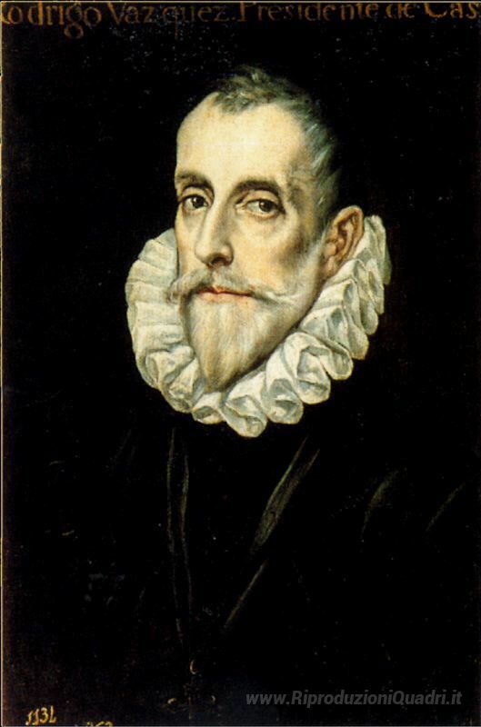 Ti offriamo una riproduzione artigianale su tela dell'opera famosa 'Ritratto Di Don Rodrigo Vasquez' di El Greco, dal Museo delle Riproduzioni.