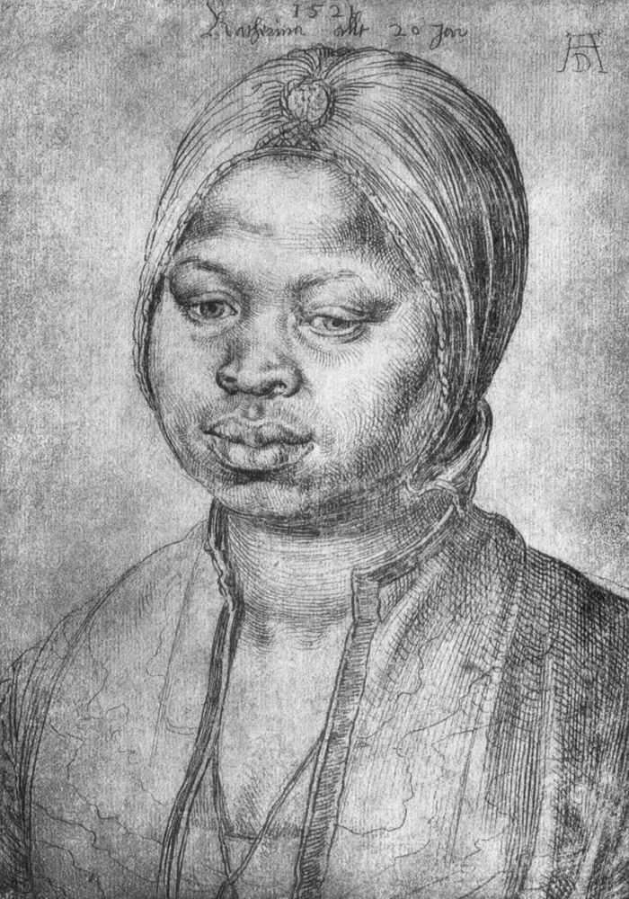 Ti offriamo una riproduzione artigianale su tela dell'opera famosa 'Ritratto di donna africana Catherine' di Albrecht Durer, dal Museo delle Riproduzioni.