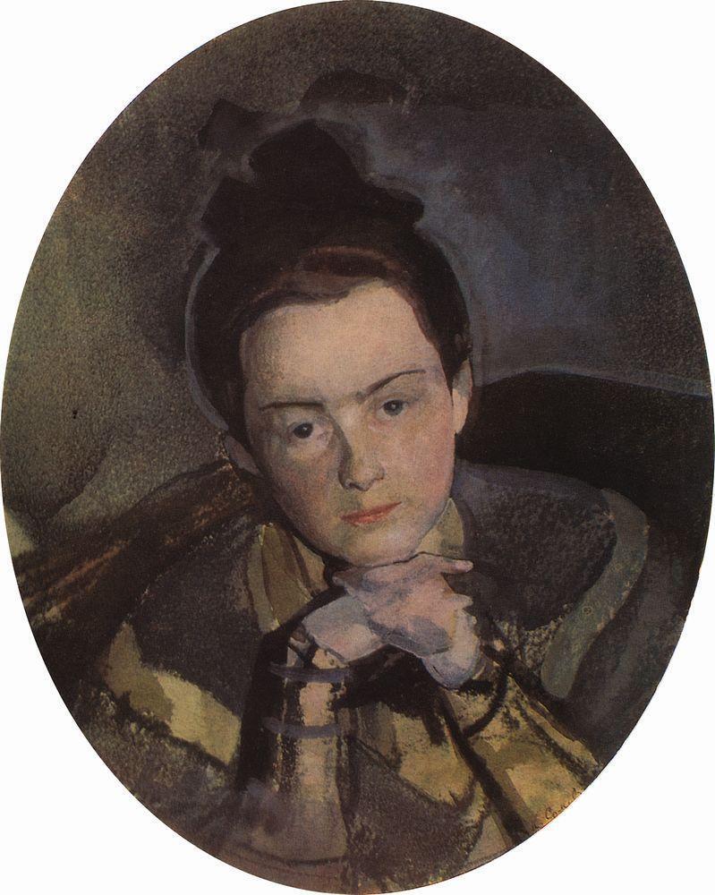 Ti offriamo una riproduzione artigianale su tela dell'opera famosa 'Ritratto di E. Ostroumova' di Konstantin Somov, dal Museo delle Riproduzioni.