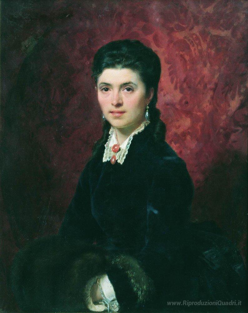 Ti offriamo una riproduzione artigianale su tela dell'opera famosa 'Ritratto di Elena Grigoriyevna Tolstaya' di Fyodor Bronnikov, dal Museo delle Riproduzioni.