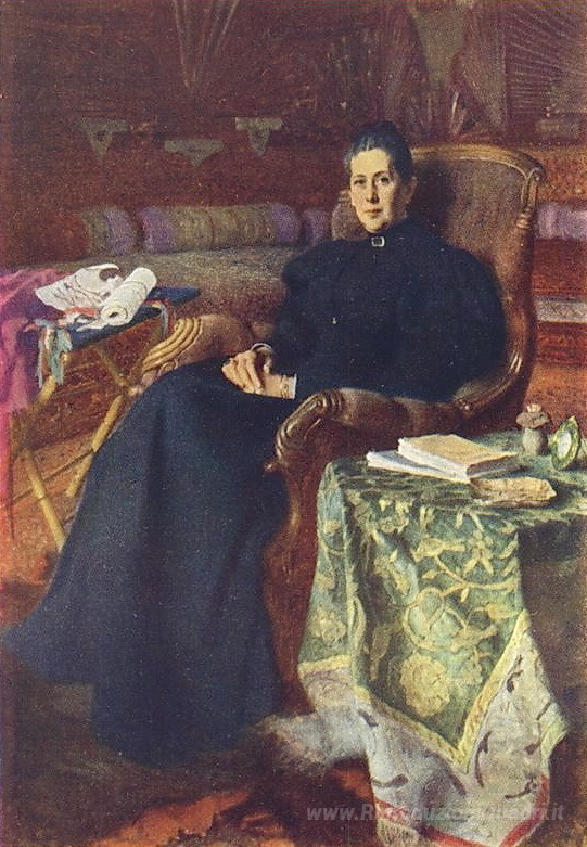 Ti offriamo una riproduzione artigianale su tela dell'opera famosa 'Ritratto di E.Sheremetieva' di Nikolay Bogdanov-Belsky, dal Museo delle Riproduzioni.