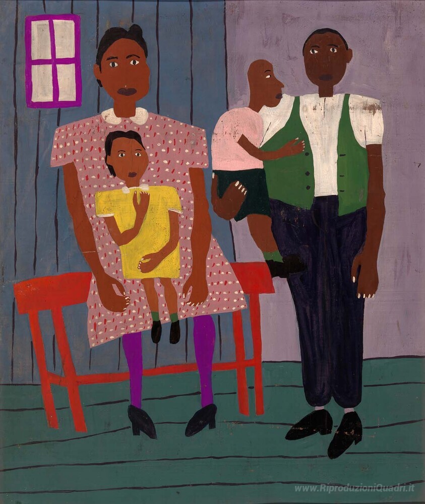 Ti offriamo una riproduzione artigianale su tela dell'opera famosa 'Ritratto di famiglia' di William H. Johnson, dal Museo delle Riproduzioni.