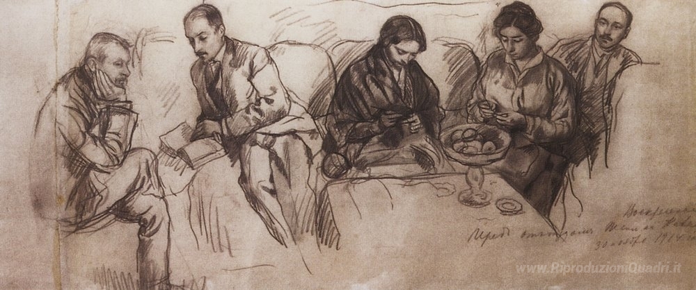 Ti offriamo una riproduzione artigianale su tela dell'opera famosa 'Ritratto di famiglia' di Zinaida Serebriakova, dal Museo delle Riproduzioni.