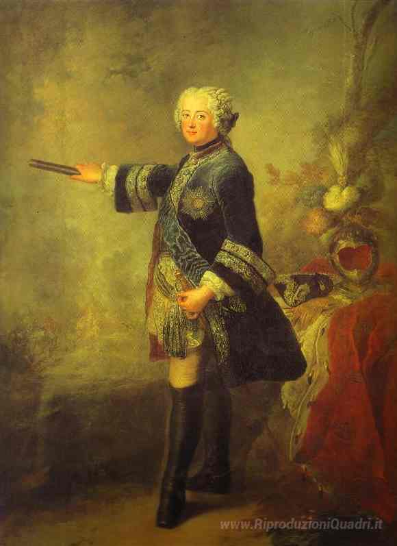 Ti offriamo una riproduzione artigianale su tela dell'opera famosa 'Ritratto di Federico II' di Antoine Pesne, dal Museo delle Riproduzioni.