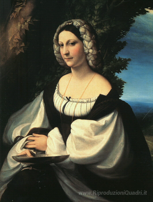 Ti offriamo una riproduzione artigianale su tela dell'opera famosa 'Ritratto di gentildonna' di Correggio, dal Museo delle Riproduzioni.