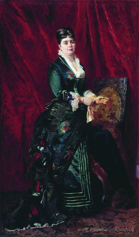 Ti offriamo una riproduzione artigianale su tela dell'opera famosa 'Ritratto di giovane donna con vestito verde' di Konstantin Makovsky, dal Museo delle Riproduzioni.