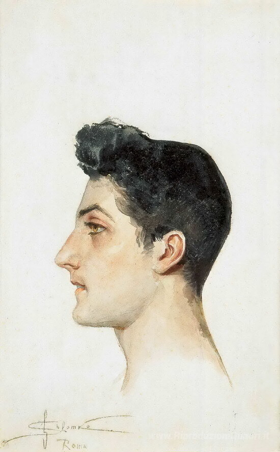 Ti offriamo una riproduzione artigianale su tela dell'opera famosa 'Ritratto di giovane uomo italiano' di Sergey Solomko, dal Museo delle Riproduzioni.