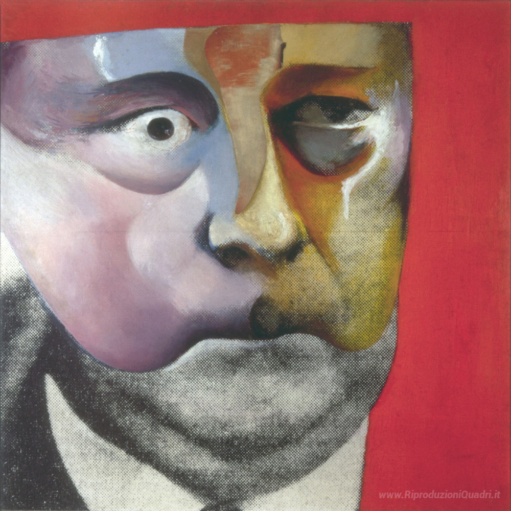 Ti offriamo una riproduzione artigianale su tela dell'opera famosa 'Ritratto di Hugh Gaitskill come un mostro famoso di Filmland' di Richard Hamilton, dal Museo delle Riproduzioni.