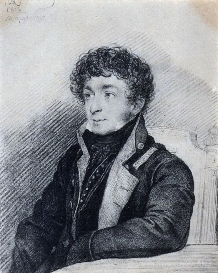 Ti offriamo una riproduzione artigianale su tela dell'opera famosa 'Ritratto di Konstantin Batyushkov' di Orest Kiprensky, dal Museo delle Riproduzioni.