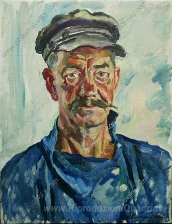 Ti offriamo una riproduzione artigianale su tela dell'opera famosa 'Ritratto di lavoratore Yakobchenko' di Pyotr Konchalovsky, dal Museo delle Riproduzioni.