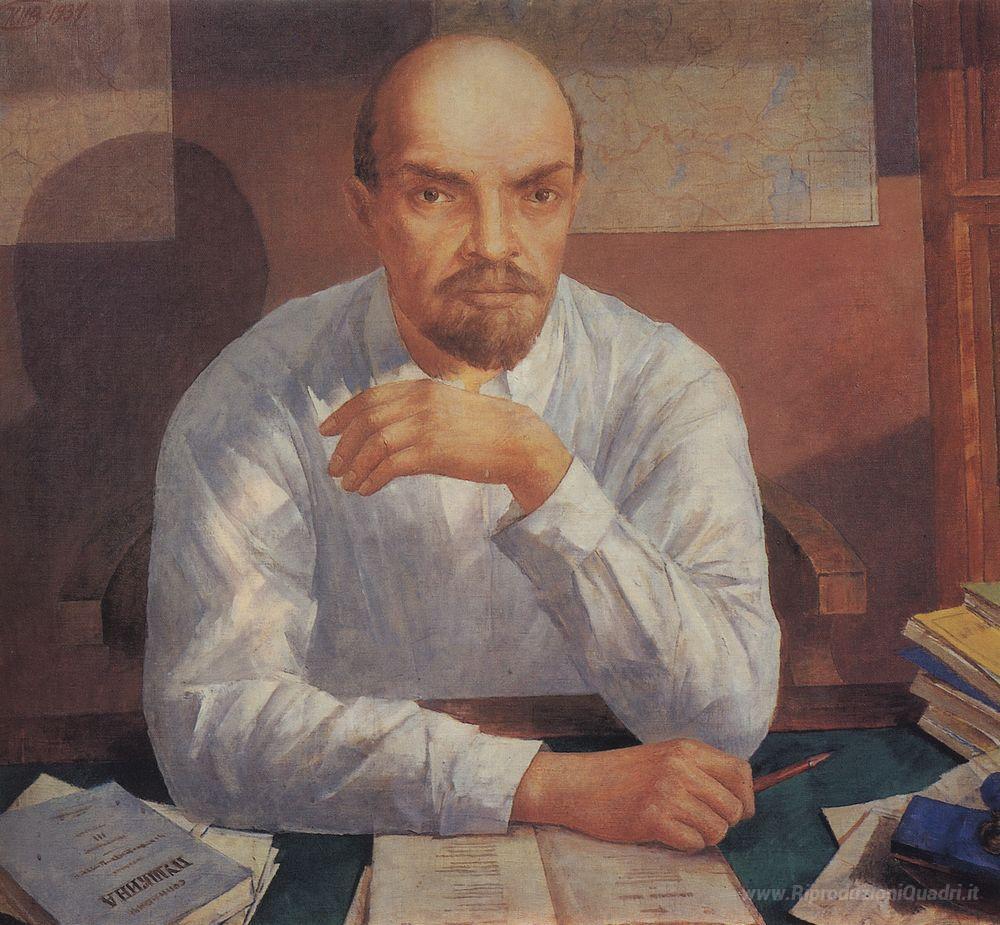 Ti offriamo una riproduzione artigianale su tela dell'opera famosa 'Ritratto di Lenin' di Kuzma Petrov-Vodkin, dal Museo delle Riproduzioni.