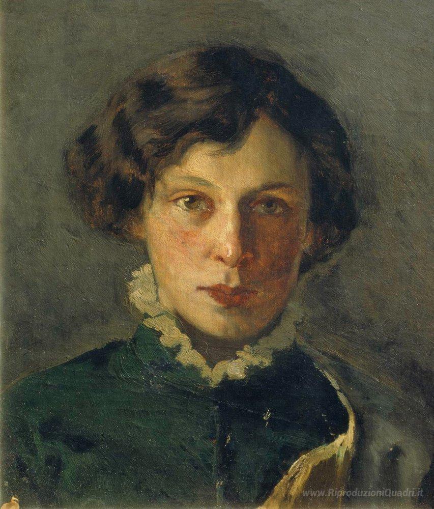 Ti offriamo una riproduzione artigianale su tela dell'opera famosa 'Ritratto di M. Nesterova, la prima moglie dell'artista' di Mikhail Nesterov, dal Museo delle Riproduzioni.