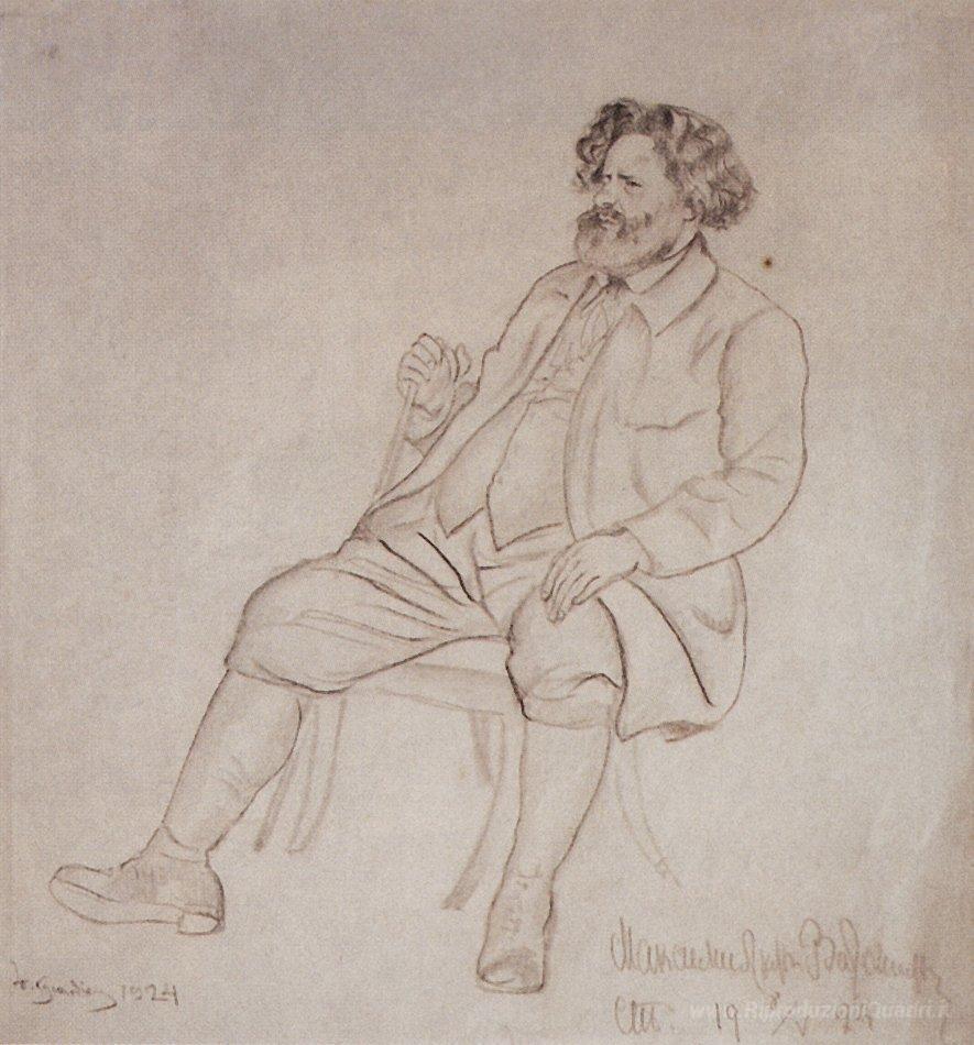 Ti offriamo una riproduzione artigianale su tela dell'opera famosa 'Ritratto di M.A. Voloshin' di Boris Kustodiev, dal Museo delle Riproduzioni.