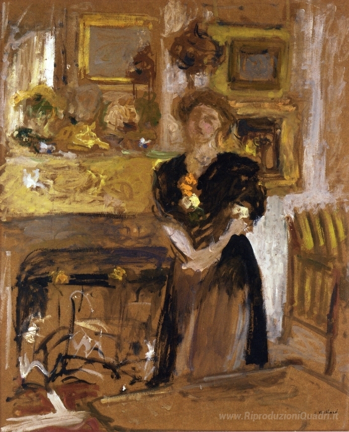 Ti offriamo una riproduzione artigianale su tela dell'opera famosa 'Ritratto di Madame Marie des Jardins Fontaine' di Edouard Vuillard, dal Museo delle Riproduzioni.