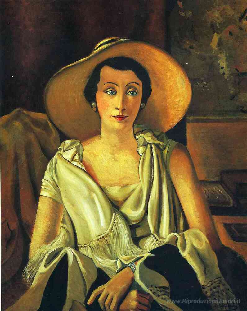 Ti offriamo una riproduzione artigianale su tela dell'opera famosa 'Ritratto di Madame Paul Guillaume con un grande cappello' di Andre Derain, dal Museo delle Riproduzioni.