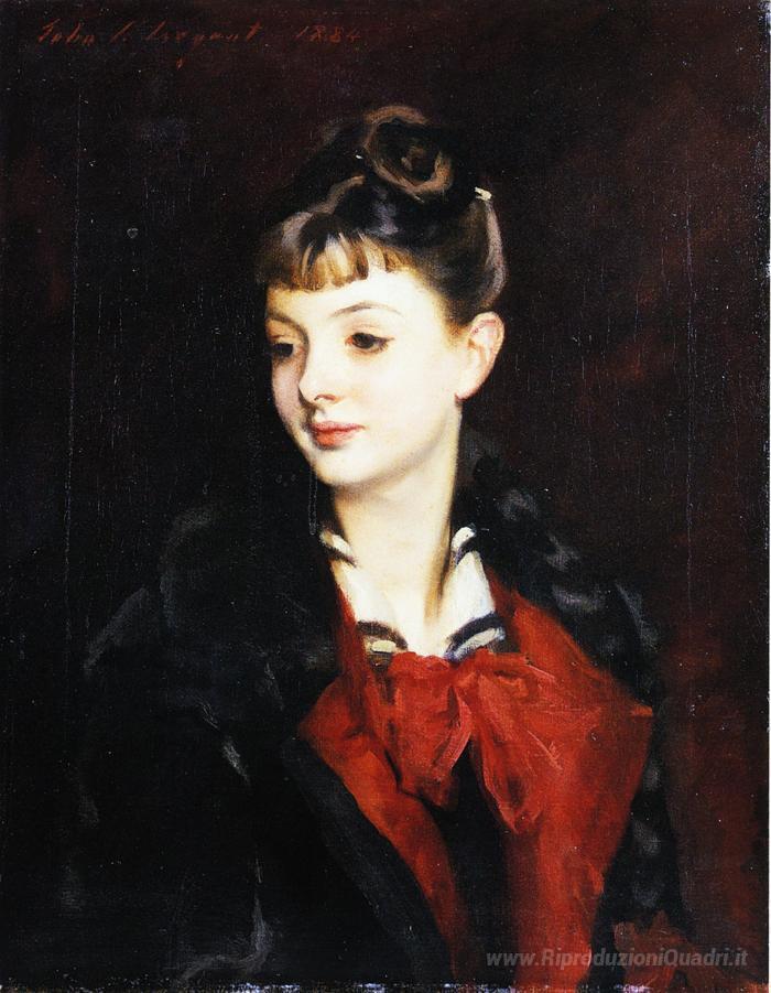 Ti offriamo una riproduzione artigianale su tela dell'opera famosa 'Ritratto di Mademoiselle Suzanne Poirson' di John Singer Sargent, dal Museo delle Riproduzioni.
