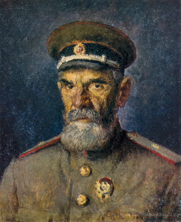 Ti offriamo una riproduzione artigianale su tela dell'opera famosa 'Ritratto di Maggiore Generale dei Servizi medici AR Zlobin' di Ilya Mashkov, dal Museo delle Riproduzioni.