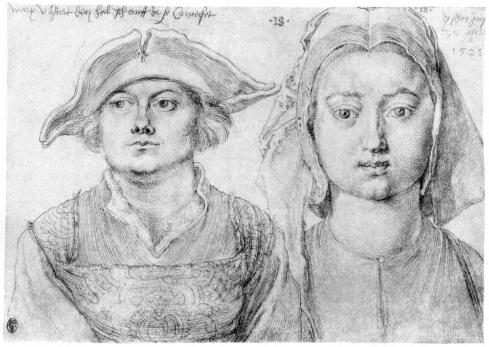Ti offriamo una riproduzione artigianale su tela dell'opera famosa 'Ritratto di Marx Ulstat e la bella principessa di Anversa' di Albrecht Durer, dal Museo delle Riproduzioni.