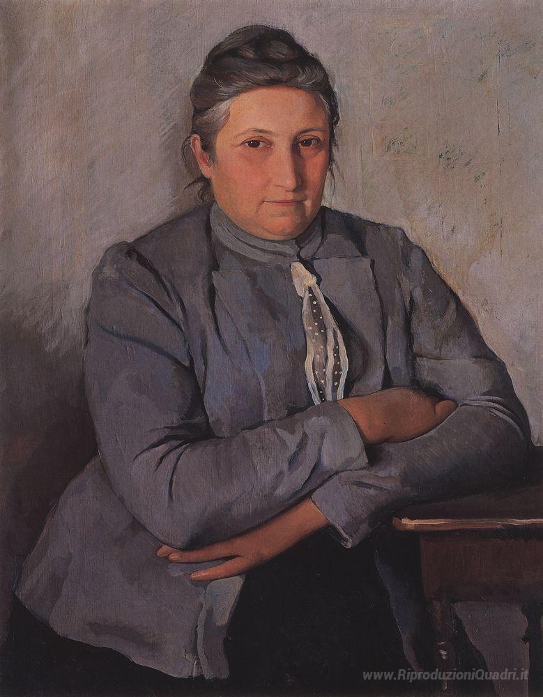 Ti offriamo una riproduzione artigianale su tela dell'opera famosa 'Ritratto di N. Lanceray. Mamma' di Zinaida Serebriakova, dal Museo delle Riproduzioni.