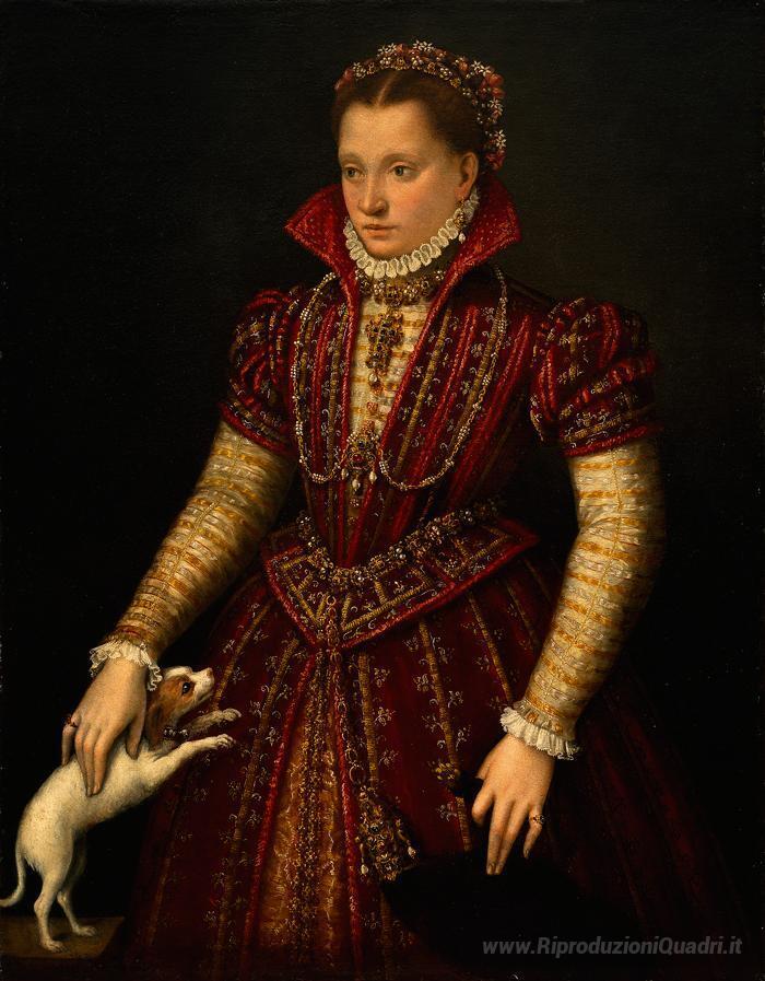 Ti offriamo una riproduzione artigianale su tela dell'opera famosa 'Ritratto di nobildonna' di Lavinia Fontana, dal Museo delle Riproduzioni.