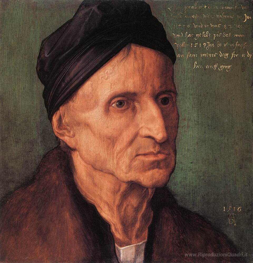 Ti offriamo una riproduzione artigianale su tela dell'opera famosa 'Ritratto di Nuremberger pittore Michael Wolgemut' di Albrecht Durer, dal Museo delle Riproduzioni.