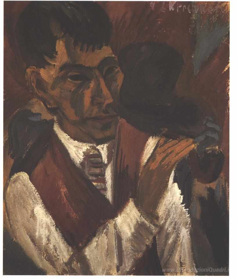 Ti offriamo una riproduzione artigianale su tela dell'opera famosa 'Ritratto di Otto Mueller con tubo' di Ernst Ludwig Kirchner, dal Museo delle Riproduzioni.