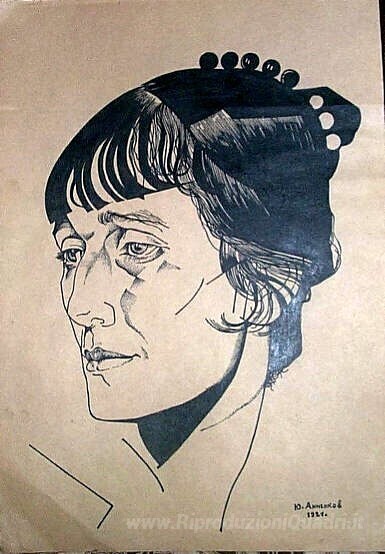 Ti offriamo una riproduzione artigianale su tela dell'opera famosa 'Ritratto di poeta Anna Achmatova' di Jury Annenkov, dal Museo delle Riproduzioni.