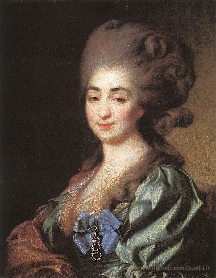 Ti offriamo una riproduzione artigianale su tela dell'opera famosa 'Ritratto di Praskovia Repnina' di Dmitry Levitzky, dal Museo delle Riproduzioni.