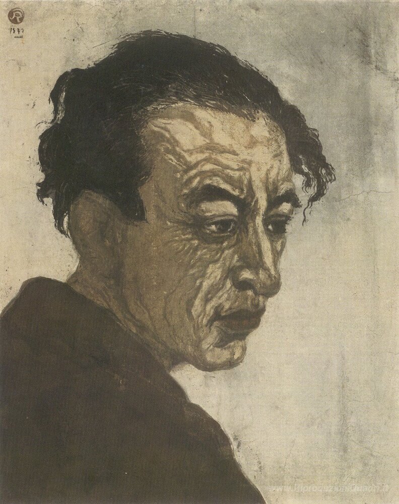 Ti offriamo una riproduzione artigianale su tela dell'opera famosa 'Ritratto di Sakutaro Hagiwara' di Koshiro Onchi, dal Museo delle Riproduzioni.