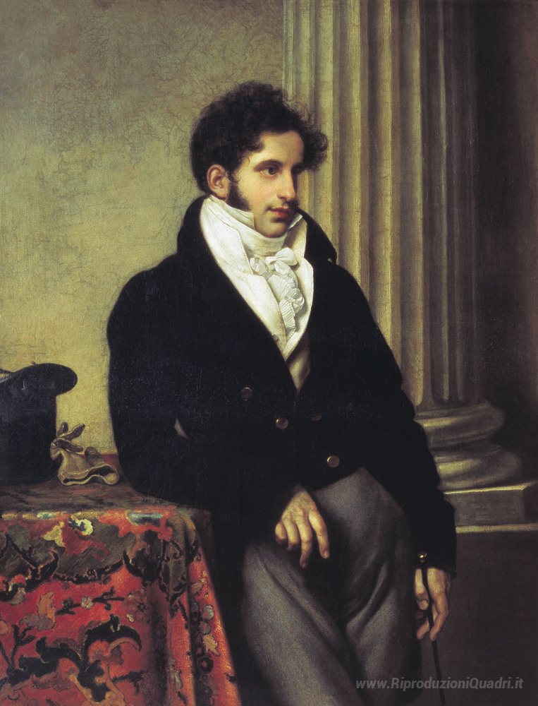 Ti offriamo una riproduzione artigianale su tela dell'opera famosa 'Ritratto di Sergei Uvarov' di Orest Kiprensky, dal Museo delle Riproduzioni.