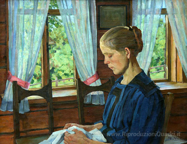 Ti offriamo una riproduzione artigianale su tela dell'opera famosa 'Ritratto di Shura' di Konstantin Yuon, dal Museo delle Riproduzioni.